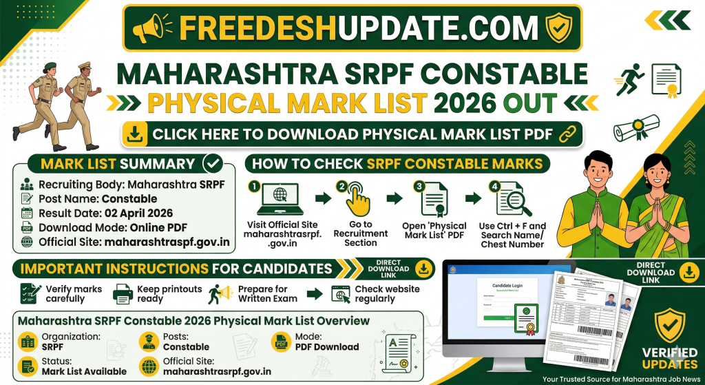 Maharashtra SRPF Constable Result 2026 OUT – Download Physical Mark List PDF